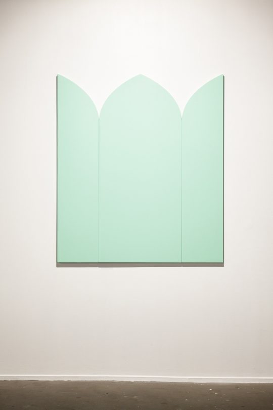 Over a number of years I have explored the role of painting in performance art. I call my work ‘in-action’ painting (versus more traditional action painting) because most works were not painted by me, or I used a paint roller. In ‘Marble’ I opted for monochromes to paint shapes based on original Gothic and Renaissance works in the Gemäldegalerie, Berlin.