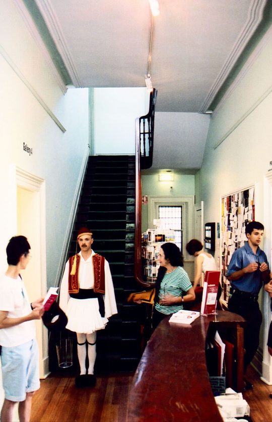 Having grown up with the richness of multiculturalism. Certain turning points in Australia’s treatment of asylum seekers and refugees in the early 2000s spurned me to react. Art is a powerful and provocative tool and the performance action EXO (meaning OUT in Greek) was direct response signalling my reaction. I describe myself as an ethnic militant. I have NO tolerance for racism and xenophobia. I have lived on the receiving end of both and silence is not an option for me.