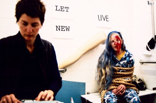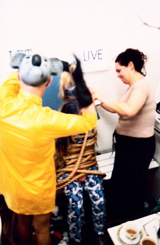 A four hour slapstick extravaganza where I interrogate Michelle Outram about art and creativity. A stenographer transcribes the proceedings onto toilet paper using a typewriter and artist Michelle Blakeney joins in to distress and torment the interrogation subject.