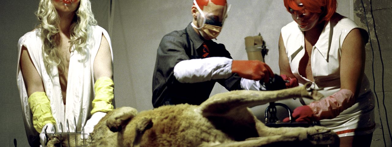 Aided by Dallas Dellaforce and Della Deluxe, I recreated a personal psychodrama. I played out the role of a surgeon. In this position I felt I had control and power. The materiality of the operating theatre, anaesthetics, operating table and equipment offers a striking contrast with the symbolic role of the kangaroo.